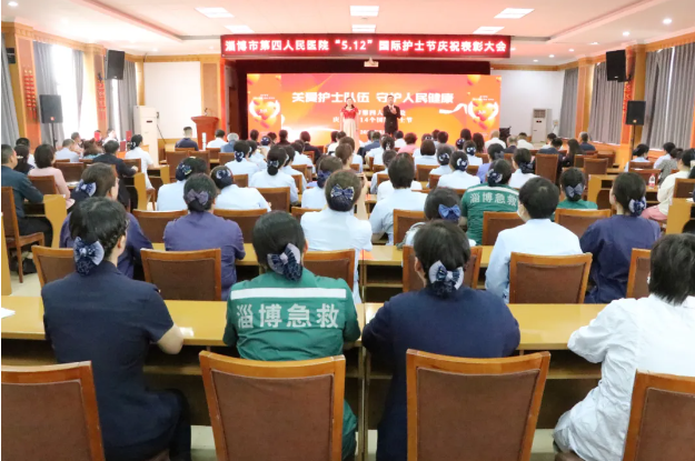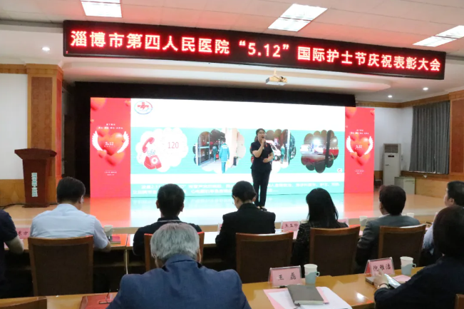 5月8日下午,淄博市第四人民医院召开第114个国际护士节庆祝表彰大会。淄博市卫生健康委二级调研员刘延军、淄博市公共交通有限公司党委书记、董事长蒋鹏、南部生态产业新城发展中心卫生健康事业部副主任宋林林、山东理工大学医院院长助理焦玉珍等单位领导和医院领导班子成员、获奖护士代表、护士长、临床医技科室及职能科室主任共160余人参加庆祝大会。